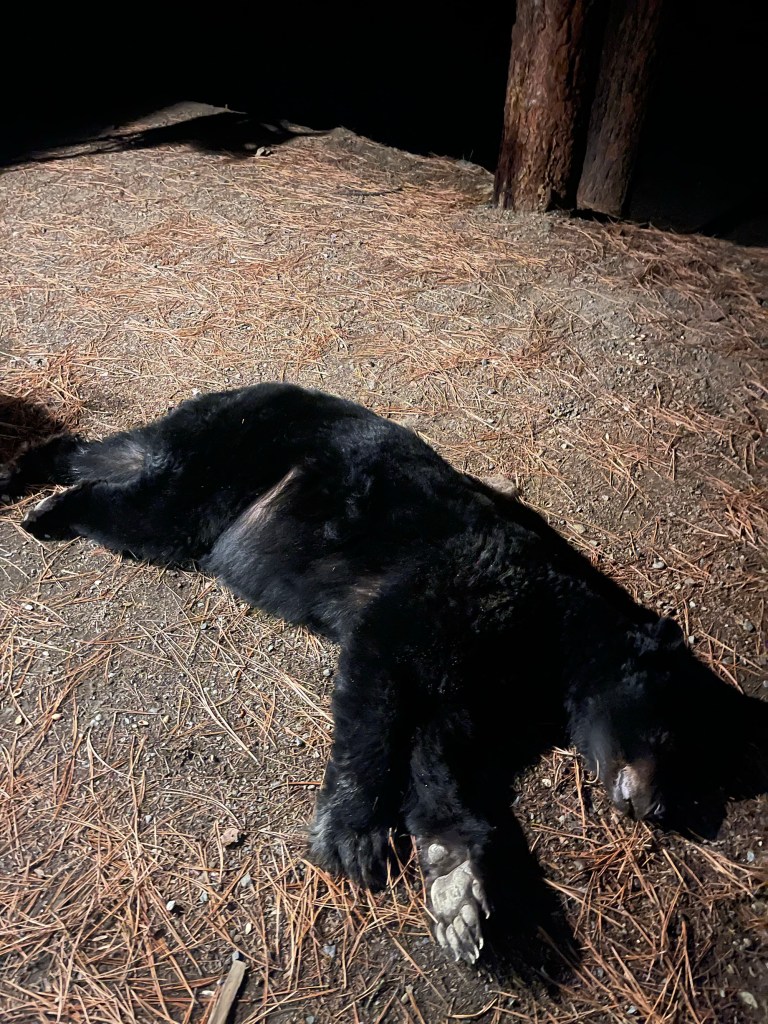 When Mike Dunn shined his flashlight at the black bear that had tipped over the garbage can in ...